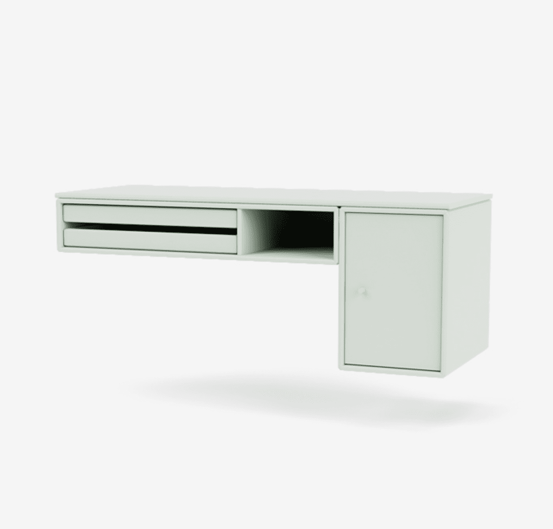 BUREAU è disponibile esclusivamente come modulo sospeso a parete ed è proposta in tutte le 41 tonalità laccate di Montana.