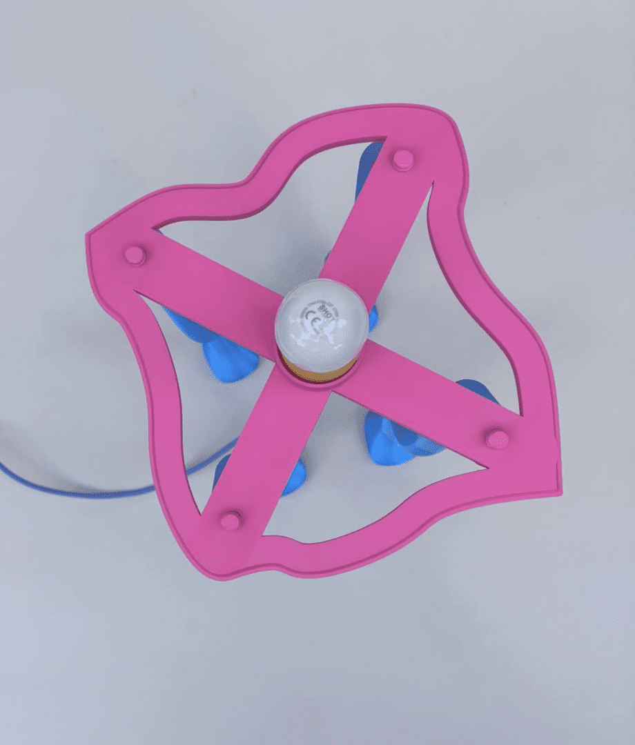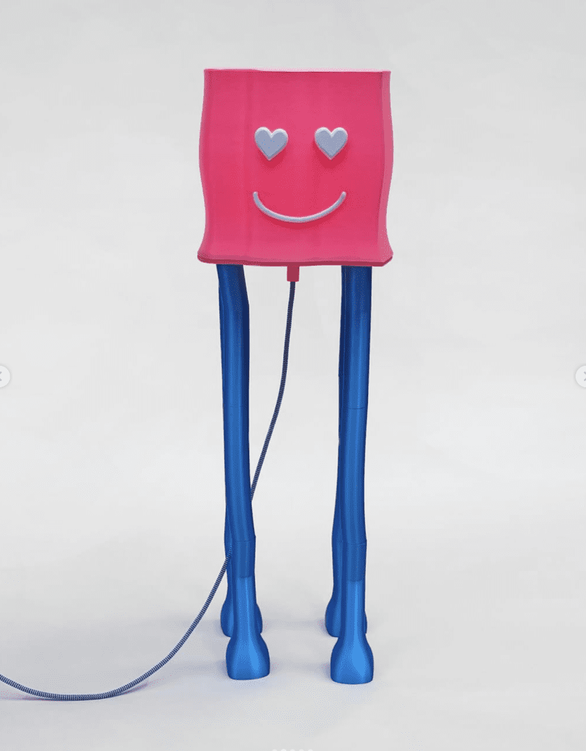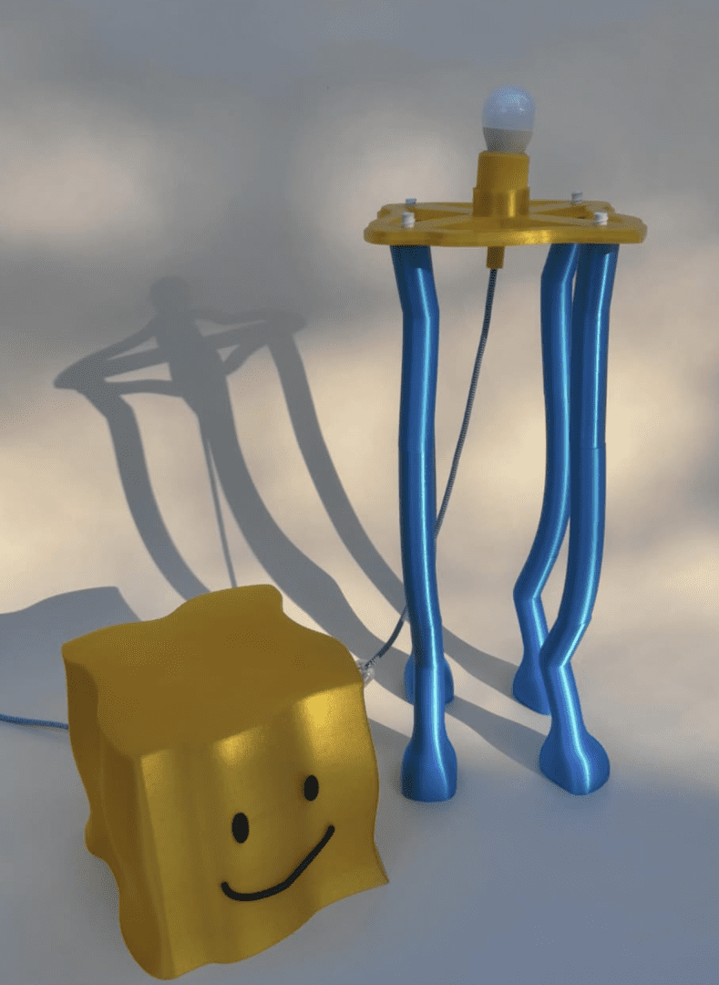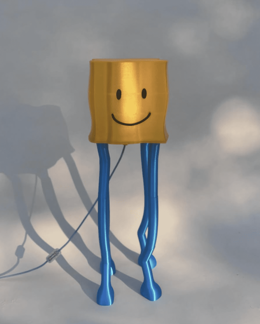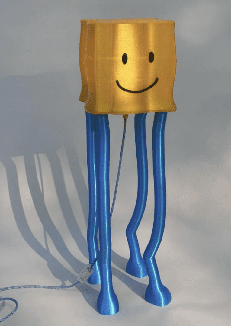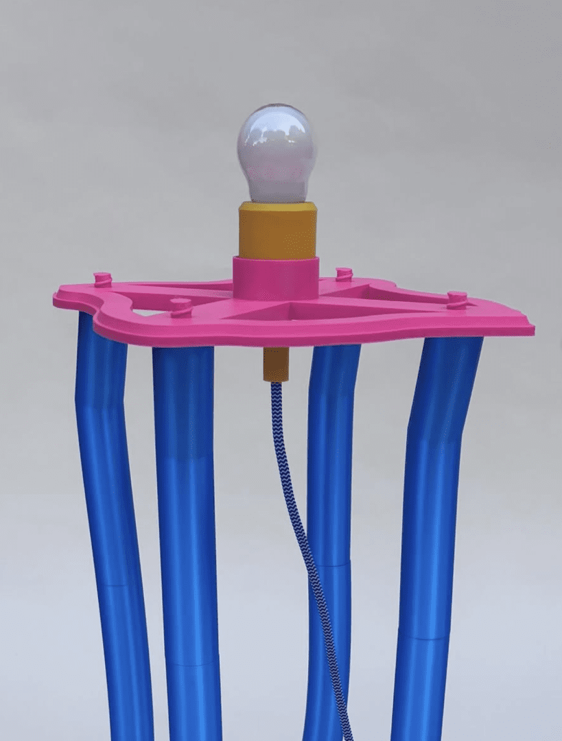 “Cheese: la lampada per grandi e piccini che accende il sorriso.” Un lampada da terra realizzata con la stampa 3Dcon filo PETG e PET. Sorriso e colori personalizzabili.