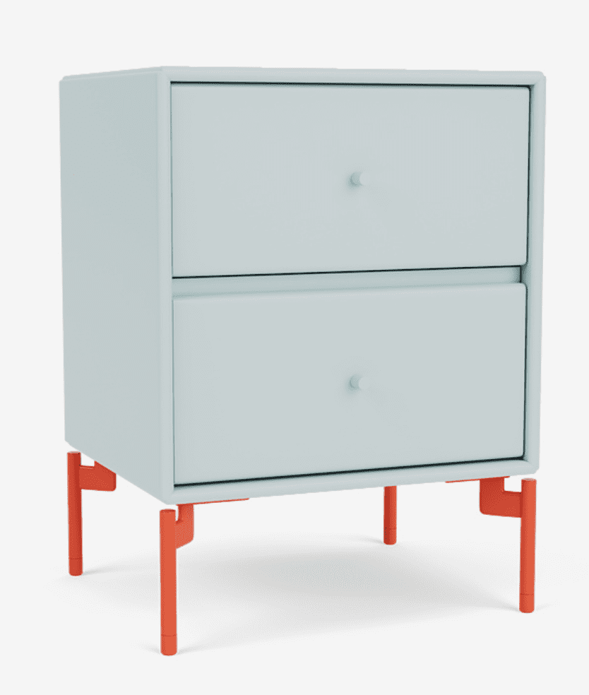 Dotato di due cassetti, DRIFT è disponibile con gambe, barra di sospensione, zoccolo oppure ruote. È perfetto per riporre il tuo libro preferito, il telefono o una tazza di caffè.