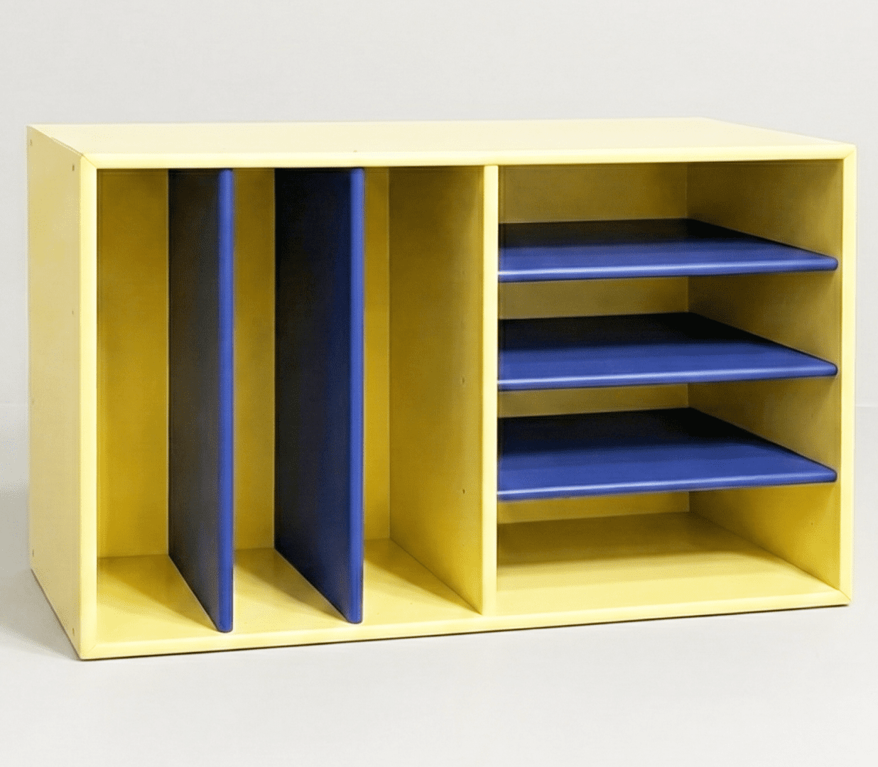 Il modulo Montana Furniture in finitura 159 Camomile con elementi interni 135 Monarch è una soluzione contenitiva dal forte carattere grafico e contemporaneo. Il giallo Camomile, caldo e luminoso, crea una base accogliente e raffinata, mentre il blu Monarch aggiunge profondità e contrasto, valorizzando la struttura con un elegante gioco cromatico.