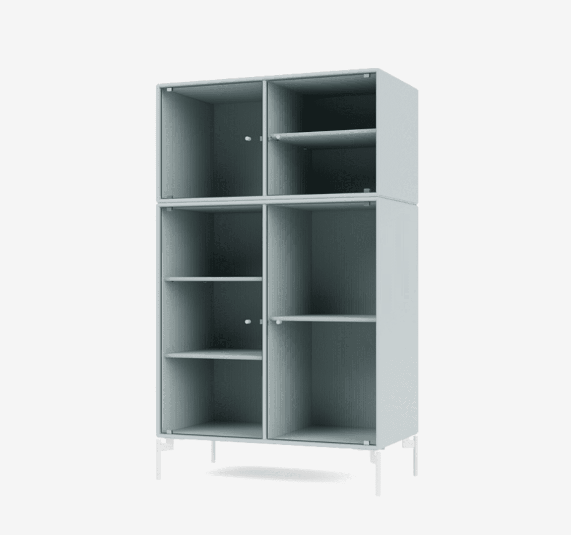 È dotato di quattro ripiani regolabili con supporti che permettono di organizzare e riorganizzare facilmente lo spazio interno secondo le proprie esigenze. È disponibile nelle 41 tonalità laccate Montana, con maniglie verniciate a polvere nello stesso colore del mobile.