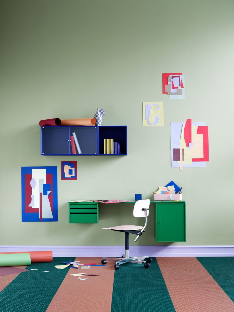 WORKSHOP è una scrivania rettangolare per l’home office, progettata con spazio per le gambe tra due moduli contenitori laterali posizionati sotto il piano.