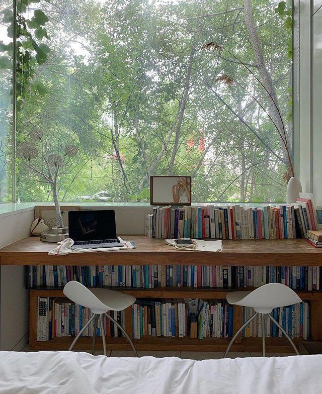 E poi c’è l’immagine forse più emblematica di questo immaginario: la finestra con una panca sottostante. Un’aggiunta profondamente romantica e dagli echi molto vintage, che trasforma una semplice apertura verso l’esterno in un non-luogo dedicato al sogno. Non serve uno spazio grandioso, bastano pochi cuscini e una coperta per creare un rifugio perfetto dove sedersi a leggere o, semplicemente, a guardare la pioggia cadere in un pomeriggio primaverile. È la versione domestica del “paesaggio interiore”.